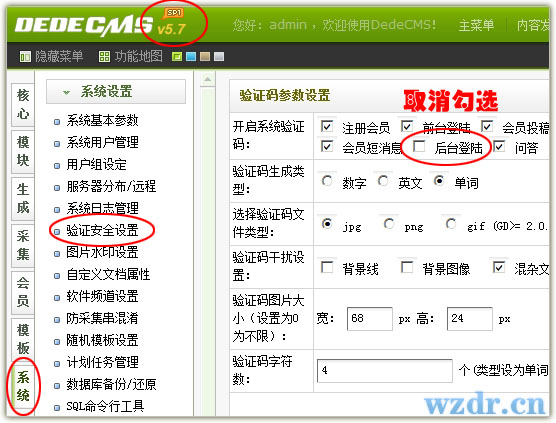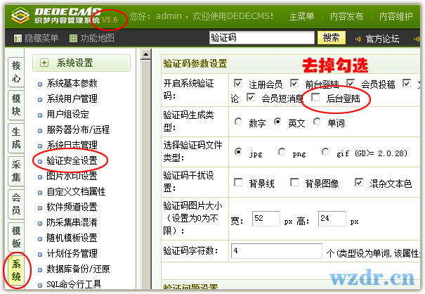 1、织梦V5.5版本的: 首先在跟目录下找到dede文件夹(后台文件夹,如果您修改了请找到修改后目录),找到login.php适用文本格式打开 搜索 if($validate==''||$validate!=$svali) 修改为 //if($validate==''||$validate!=$svali) if(1==2) 这个主要是跳过验证码,让狂人站群软件登陆到后台,才可以更新内容。 2、织梦V5.6版本的: 手工进入你的网站后台,在“系统”---“验证安全设置”,里面的开启系统验证码,去掉“后台登陆”的勾就可以了
