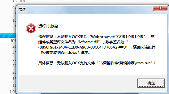 错误信息:无法载入OCX支持文件“D:\营销神器\com.run” ! 分析原因:可能相应文件丢失,或解压后被win8自带的杀毒软件给瞧瞧删除了 解决方法:从压缩包里面,把"com.run"这个文件重新解压出来。如果压缩包里面没有这个文件,请重新下载完整包。 如果是被杀毒软件删掉了文件,那么请把这个文件添加到信任,或先关闭杀毒软件再解压。 如果没有丢失文件,那么可以考虑用【管理员身份】运行软件。(如下图)