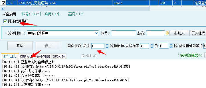 下面这是重要设置部分,我们需要勾选【循环使用接口】,首页参数【发布1次换帐号】: