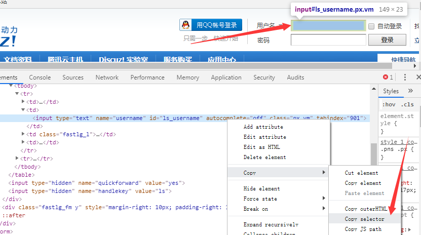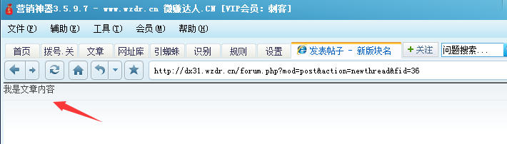 [@*写内容] --参数1:css选择器、xpath选择器 --参数2:填写的内容 --参数3:增强参数(6.1.05以上版本有效,后面部分有对参数3的详解) --6.1.09 增强 填表 [@*写内容]第3参数为加强参数:写源码、键盘输入、框架=2、框架=e_iframe、索引=2、事件名、等; 例1: [登录1写内容][name="username"],"wzdr1"[/登录1写内容] --填写账号 [登录1写内容][name="password"],"wzdrwzdr"[/登录1写内容] --填写密码 [登录1写内容][name="password"],"wzdrwzdr"[/登录1写内容] --填写密码 例2: [登录2写内容]#ls_username,"wzdr1"[/登录2写内容] --填写账号,这是用选择器方式,如下图 [登录2写内容]#ls_password,"wzdrwzdr"[/登录2写内容] --填写账号,这是用选择器方式 ![]() --后面绿色部分是注释,可以不写 Q、关于body文本框 右键点击内容文本框,检查,找到唯一元素,这里是body文本框,到底是第几个body呢,一般我们从1开始测试,发现写入的内容位置错误(如下图) 例3: [发布1写内容]body,"我是文章内容",框架=1[/发布1写内容] --框架1是错误的,所以写内容后变为上图的样子了 例4: [发布1写内容]body,"填写的内容",框架=2[/发布1写内容] --body在第2个框架,一般从第2开始测试,然后听写3、4,推荐用下面直接填写id的方式 --6.1.05以上版本有效 [发布1写内容]body,"我是文章内容",框架=ueditor_0[/发布1写内容] --为了更直观一些,可以填写iframe的id#ueditor_0 --6.1.05以上版本有效 --当然,主流的网站程序,不需要填写第3个参数,程序能自动识别后填写
