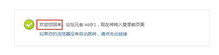 ----------------------------------------------------------------------------------------------------------------------------------------------------------------------------------------------- 登录成功后,会弹出此页面,我们在这个页面找一个成功特征关键词,如“欢迎您回来”。(如下图) [登录1填表成功特征]欢迎您回来===填表登录成功了。[/登录1填表成功特征] --判断是否成功 【详细说明】