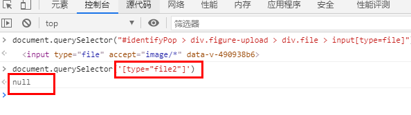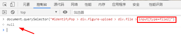 如果输入一个错误的选择器,会提示 null 如下图:
